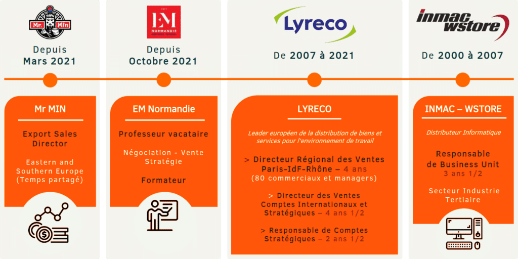 Une expérience de 25 ans en entreprise dans la vente et le management d’équipes commerciales auprès de tous types de clients (des PME jusqu’au comptes stratégiques).
